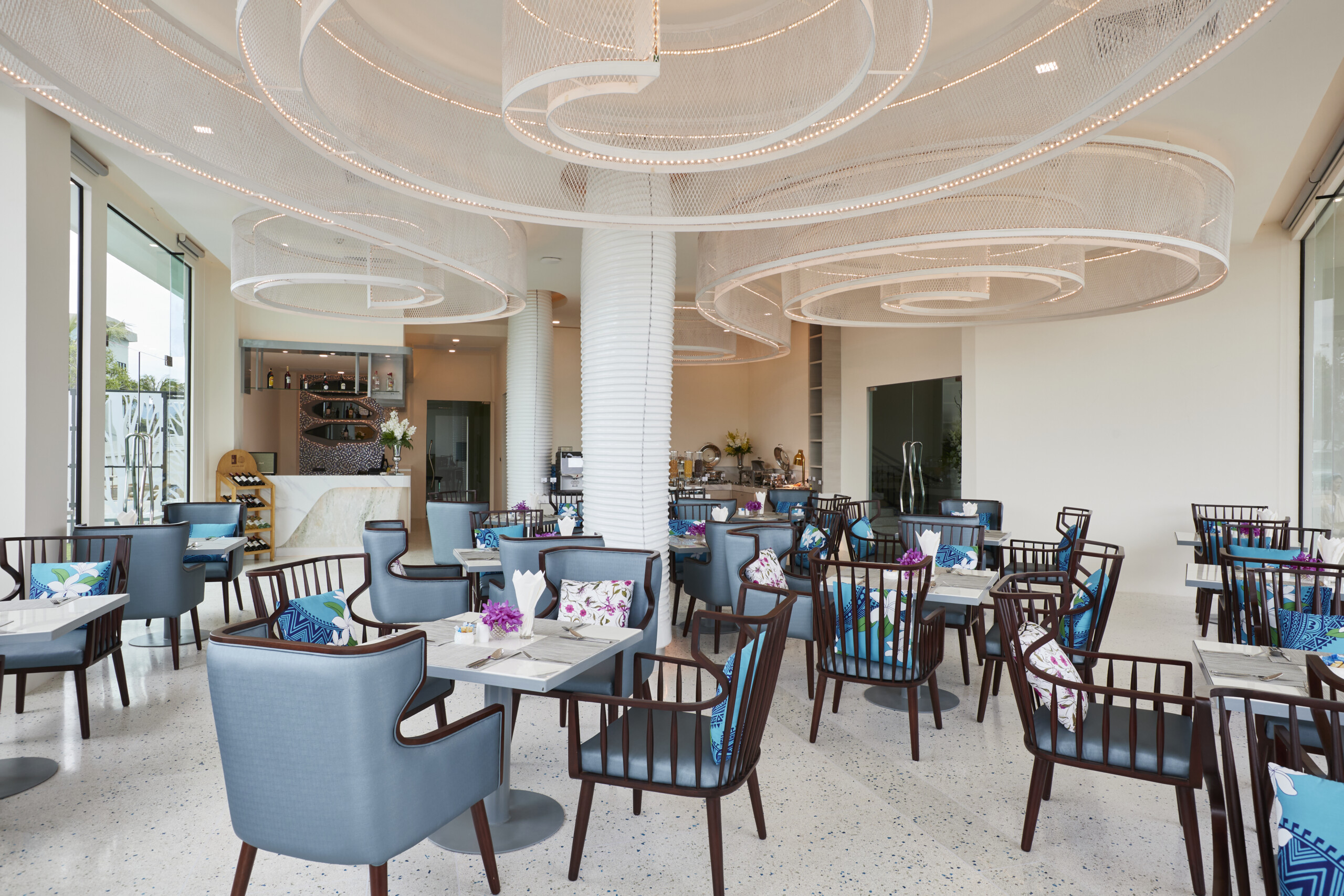 ห้องอาหาร ที่ออกแบบสร้างมาได้อย่างงดงามเพื่อให้บริการ ลูกค้าที่เข้ามาใช้บริการที่โรงแรม คอนเซ็ปต์ของห้องอาหารนี้ อยากให้บริการอาหารต่างๆ ด้วยความเรียบง่าย ในช่วงเช้า ก็จะเป็นรูปแบบการบริการอาหารเช้าตามปกติ ในช่วงบ่ายก็จะบริการอาหารจานด่วนง่ายๆ รวมไปถึงมื้อเย็น